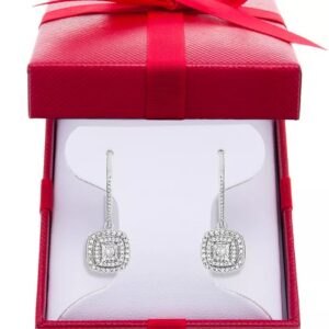 Diamond Halo Drop Earrings (1/2 ct. t.w.) in Sterling Silver, 14k Rose Gold Sterling Silver & 15k Gold Sterling Silver.