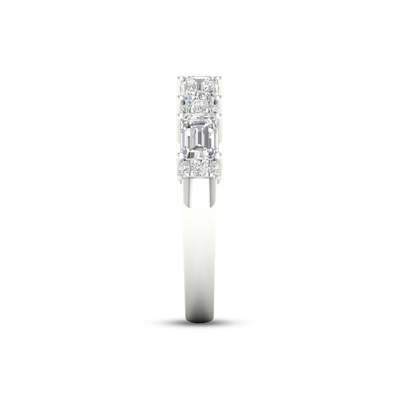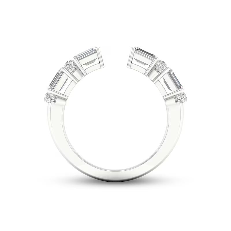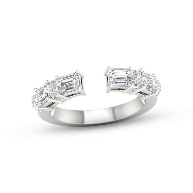 Perfect for stacking or for a chic look when worn alone, this beautiful ring showcases an open deconstructed band design set in iconic 14K white gold. Stunning emerald-cut diamonds alternate with duos of brilliant round diamonds for a total diamond weight of 1 carat.