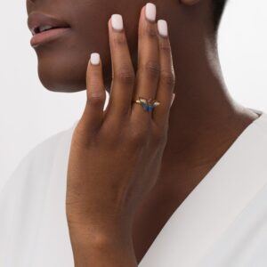 Garnet and Blue Sapphire Tiara Ring in 10K Gold
